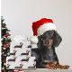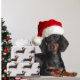 Un perro de Dachshund con un diseño de envoltura de regalo para Navidades de Santa hat. Rellene su temporada de vacaciones con nuestro periódico de envolver de perros con un adorable Dachshund vestido con un sombrero de Santa. Este encantador diseño le da un toque lúdico a los regalos de sus Navidades.