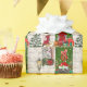 Navidades de perro caniche sentados afuera de la casa decorada con corona de Navidades, el árbol de Navidad es una idea de regalo perfecta para los amantes del perro.