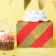 Un patrón festivo de rayas diagonales rojas y doradas para añadir un toque tradicional de Navidades a su envoltura de regalo esta temporada de vacaciones.