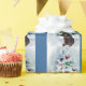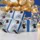 Agradables navidades de rottweiler en el arte de una joven corbata sentada frente a un árbol de navidad de bosques. Mercadería de vacaciones para los amantes del rottweiler al tesoro. Maravillosos regalos y prendas de vestir.