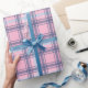 Divertidos Navidades rosados y azules tartan envolviendo papel. Envoltura de regalo de chapa de bonito.