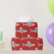 A los entusiastas del tiburón les encantará este papel de envoltura humorístico. ¡Qué manera tan atractiva de decir Felices Fiestas!