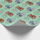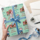 ¡Este es un diseño de envolvimiento de regalo para los niños! Cuenta con una divertida imagen de Santa Claus saludando desde una locomotora azul, y una segunda imagen de dos pingüinos blancos y negros en un tren rojo brillante. La imagen se repite en la superficie del papel, al igual que los dos campos de texto personalizados en Navidades brillantes de color rojo y azul verde azulado. Es maravilloso envolver de regalo para que un padre o abuelo lo use para los regalos de un niño, y a cualquier pequeño le encantará ver su propio nombre en el periódico. Las imágenes y el texto se colocan sobre un fondo verde azul claro. *Gracias a Real Deal Clipart por el cliente usado para crear este diseño. http://realdealclipart.com *