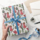 Este divertido y festivo artículo de envoltura de Navidades de Howdy de Occidente incluye ilustraciones a mano de botas de vaquera de Navidad, gorras, mitones, cactus, bayas y estrellas. Todo con un elegante fondo de marfil.