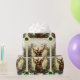 Hermoso diseño de estilo vintage con ciervos y conos de pino. Piedras de gema verde 3D de Bulgan Lumini (c)