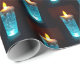 Elegantes velas turquesas azules con velas de patrón de velas encendidas Feliz Navidad Feliz Diwali Deepavali Navidad Temporada Regalo de envolvimiento Papel