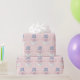 Este envoltorio de regalo para Navidades tiene un muñeco de nieve con cuerpo de damasco azul sobre un fondo rosa rubor.