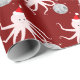 Navidades de novedad divertida envolviendo papel con un patrón de ilustraciones sonrientes, rosados, de pulpo usando sombreros de Santa y sosteniendo bolas de disco en un fondo rojo borgoña. Disco Ball Octopus rosa Santa Hat Navidades envolviendo papel de vacaciones diseño | ©Melissa Patton - Artista/Ilustrador