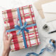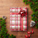 Papel de envolvimiento vintage navideño blanco y beige tattersall patrón enredado. Ideal para los Navidades y para la temporada de vacaciones.