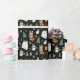 Este lindo papel de envoltura incluye animales de invierno, con gorras y bufandas - encontrarás osos polares, pingüinos, zorros, ardillas y conejos. Los copos de nieve, los dulces, los árboles de Navidad y las galletas de pan de jengibre añaden un toque divertido y caprichoso. El color de fondo es negro, pero se puede personalizar a cualquier color que desee. ¡Ideal para regalar esta temporada!
