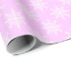 Este papel de envoltura presenta un patrón de copos de nieve blancos sobre un fondo rosa pastel suave.
