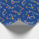 Este Navidad envuelve papel con un diseño de latas de caramelo de arcoiris. Hay dos tipos de caramelos de arcoíris girados con copos de nieve sobre un fondo azul. Puedes hacer que el patrón de caña de dulces sea más grande o menor en este envoltorio de regalo. Un divertido regalo para Navidades para su temporada de vacaciones.