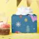 Espero que te guste este fondo azul con un lindo dinosaurio que lleva un gorra de Santa Claus.