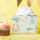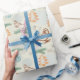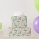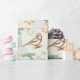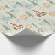 Ilustracion de paloma marrón sobre un patrón impecable de fondo beige. Tos verde de árbol de Navidad con adornos colgados. Las campanas y copos de nieve llenan este hermoso patrón de vacaciones.