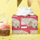 Un lindo cachorro recuperador de oro con Navidades a rayas en rojo.