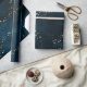 Elegantes Navidades de moda de lujo festivo Regalo Hojas de envolver en tonos azul oscuro con estrellas de color oro (sin efecto oro real).