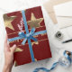 Navidades Estrellas Patrón Faux Oro Elegante Navidades Rojo y Oro Envolver regalo, Papel de envolver regalo con texto personalizado "¡Te deseamos una Feliz Navidad! Con amor, la familia Williams", puedes cambiar o borrar el texto