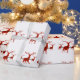 Papel de envolver de regalo de vacaciones mostrado con una huella de ciervo rojo sobre un fondo blanco. Personalizar este artículo o compra como está.
