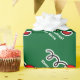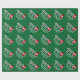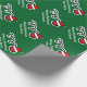 Feliz papel de envoltura navideño con la bola de cricket Santa Hat. Diseño de vacaciones para jugadores y aficionados al deporte. Gracioso envoltorio de regalo de Navidad para hombres, mujeres y niños (niños y chicas). Personalizable con nombre personalizado y saludo. Colores verde y rojo. El color de fondo es personalizable.