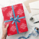 Papel de envolver de regalo de vacaciones mostrado en un color de fondo rojo con una estampada festiva de copo de nieve de Feliz Navidad. El papel brillante mostró al Personalizar este artículo o comprar tal como está.