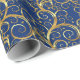 Papel de envolver de regalo de vacaciones mostrado con un elegante bonito de remolinos dorados impreso en un color de fondo azul real. Elija el color de fondo. Personalizar este artículo o compra como está.