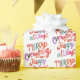 Un Navidad festivo envolviendo papel que dice 'Feliz todo y siempre feliz' en letras de colores vivos.