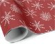 Este papel de envoltura de Navidades festivos presenta diseño de copos de nieve con fondo rojo. Papel elegante para su envoltura de regalo.
