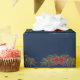 El ilustracion original de Destei de una festividad verde garland de abetos decorada con un gran arco rojo, Navidades rojos baubles y algunas luces falsas. El color de fondo es azul oscuro. También hay dos áreas de texto personalizables.