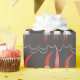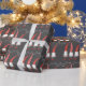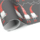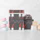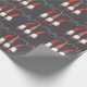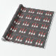 Los gnomos más bonitos envuelven papel rojo y blanco sobre negro. con luces de cuerda colgantes. Moderno y caprichoso.