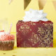 Elegante patrón de damasco de purpurina de oro metálico falso sobre un fondo rojo que hace de este papel de envoltura hermoso y elegante para todas sus vacaciones envolturas de regalo.