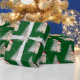 Un adorable cachorro de recuperación dorada con sombrero de Santa y árbol blanco de vacaciones en copos de nieve sobre un fondo verde. Se puede cambiar el color de fondo.