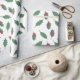 Papel de envoltura vacacional con hojas huecas pintadas de acuarela y bayas rojas en forma de repetición aleatoria.