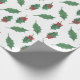 Papel De Regalo Navidades Green Holly Red Berries Sobre Blanco