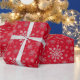 Papel De Regalo Navidades gris plateados con copos de nieve en roj