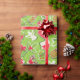 Envuelve tus regalos de vacaciones con este papel de envolver de temporada con copos de nieve, hojas de pino, campanas de Navidad, muñecos de nieve, regalos de Navidades, renos, velas de Navidades y árboles de Navidad con fondo verde. Tus regalos se verán más alegres debajo del árbol.