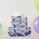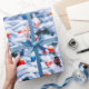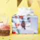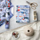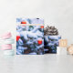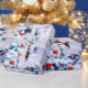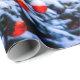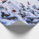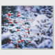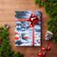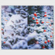 Las gorriones y una paloma junto al alimentador de aves en invierno. Árboles de Navidad cubiertos de nieve decorados con bolas rojas y azules alrededor. Navidades idyll. Papel de envoltura único y único. Puede transferir este diseño a una gran variedad de otros productos, sólo elija un producto de una línea a continuación. ¡Diviértete y sé feliz!