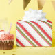 Envuelve tus regalos con estilo con estos hermosos navidades envueltos en papel con coloridos patrones de rayas rojas, verdes y blancas.