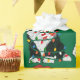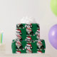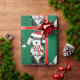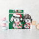 Un lindo Personalizado de ovejas negras y blancas con sombrero de Santa Cruz, pañuelo de rayas rojas y blancas, envuelto en luces navidades. ¡Adorable papel de envoltura de sheepadoodle!