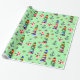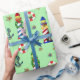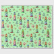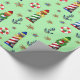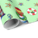 Papel De Regalo Navidades náuticos iluminan casas de fondo verde