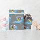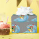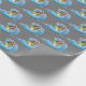 Surfista con gorra de Papá Noel y surfeando en una ola azul.