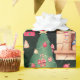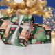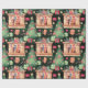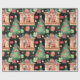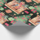 Casa de campo de estilo rústico de estilo cutáneo con papel envolvente de vacaciones/Navidades. Muy festivo con árboles de Navidad y artículos de temporada. Dulce papel de envoltura de regalo de vacaciones.