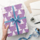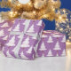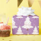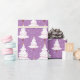 Navidades de color morado y rosado dibujados a mano envuelven papel. Un lindo y nevado diseño de árbol de Navidad con árboles rosas y blancos sobre un fondo morado con nieve blanca, estrellas y copos de nieve en un diseño impecable perfecto para envolver regalos.