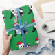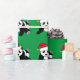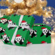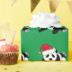 Cute Navidades papel de envoltura animal con un hermoso oso panda con un sombrero rojo de santa sobre papel verde. Papel de embalaje de vacaciones de bonito.