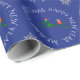 Este papel de envoltura con temática de remo tiene un texto blanco que puede ser editado para su saludo preferido, o simplemente puede usar: "FELIZ AÑO NUEVO DE NAVIDAD". El diseño muestra un rower pictograma (en verde navidad) con un sombrero santa y un paquete festivo en el bote. El fondo es marino y también hay copos de nieve de colores dorados.