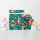 ¡Envuelve tus regalos de Navidades con estilo! Este papel de envolvimiento de regalo festivo incluye marcos de adorno de bombillas redondas de color rojo, verde y dorado con espacios para tres (3) fotos diferentes. Los copos de nieve de invierno blanco y los corazones acentúan el diseño. Se puede personalizar el color de fondo impreso de color verde esmeralda. La redacción de Feliz Navidad en escritura moderna también puede ser personalizada. Consejo de la foto: recortar las fotos a una forma cuadrada antes de cargarlas.