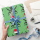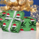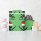 Navidades de Guay envolviendo papel con un patrón de vacaciones verdes de un cráneo con un gorra rojo de Santa Claus. Me gusta este lindo esqueleto de regalo de Navidad.