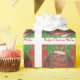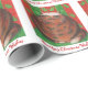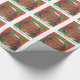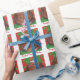 Un feliz gato de los tortoiscones (¡que se parece a un pudín de navidades!) se sienta sobre un cojín verde contra un fondo rojo y verde con motivos en hojas y con "Purrfect Navidades Wishes" escrito en blanco sobre un fondo rojo. Navidades de corte que empaquetan papel con un personalizable para que usted pueda personalizar con su propio texto, mensaje o imágenes. Imagen creada a partir de un dibujo original de lápiz de color.