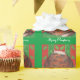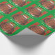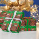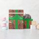 Un feliz gato de los tortoiscones (¡que se parece a un pudín de navidades!) se sienta en un cojín verde contra un fondo con motivos rojos y verdes de hojas huecas, y 'Feliz Navidad' escrito en blanco sobre un fondo verde. Navidades personalizados envolviendo papel con un diseño de personalizable para que usted pueda personalizar con su propio texto, mensaje o imágenes. Imagen creada a partir de un dibujo original de lápiz de color.