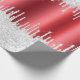 Este brillante envoltorio de regalo tiene una base roja festiva metálica de Relieve metalizado falso, con goteos impresos de purpurina platino de fusión en ambos lados.
