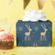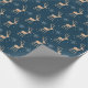 Elegante y moderno Navidad de papel de envolver azul con un motivo de reno y copo de nieve.